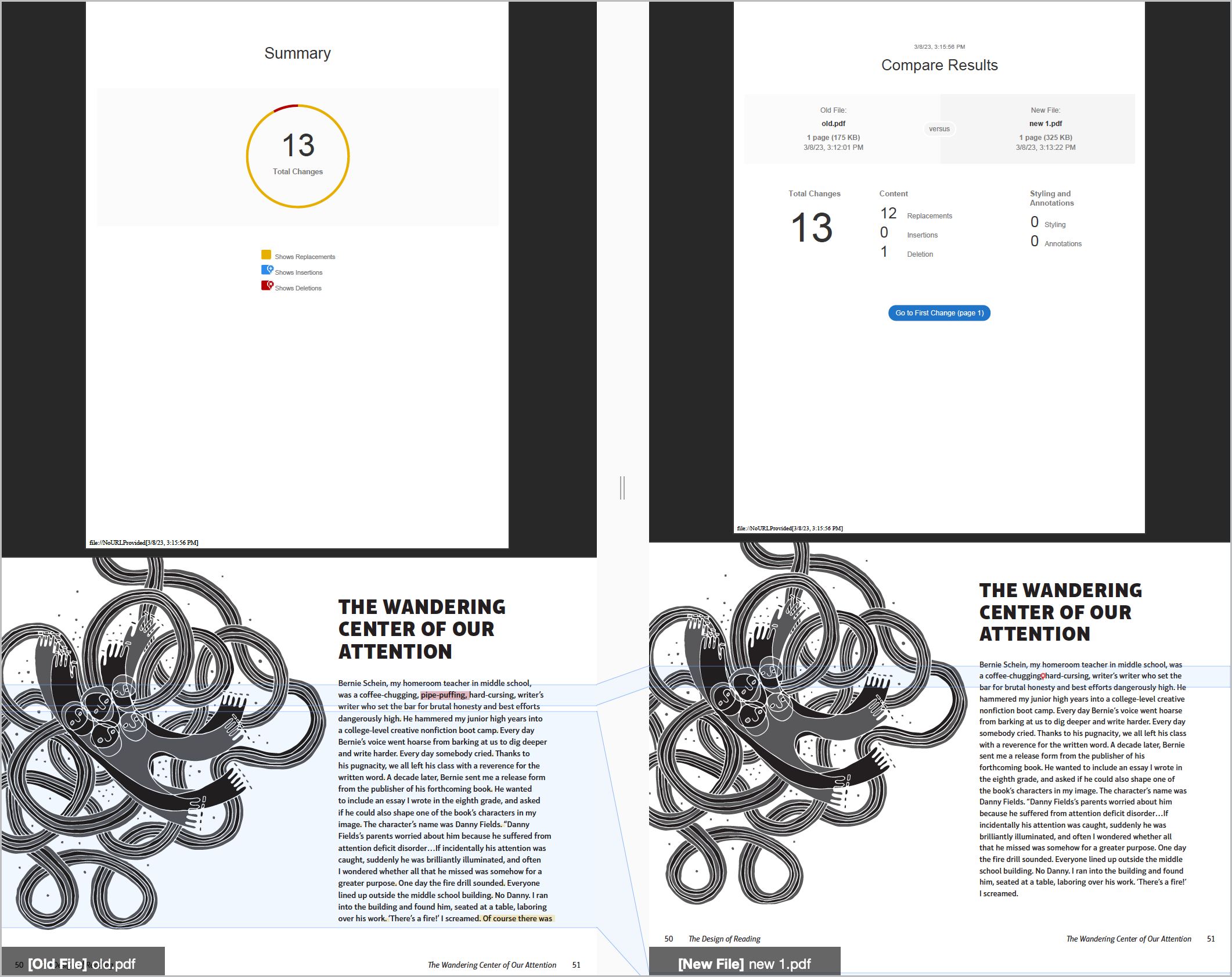 Screenshot of Acrobat's comparison mode.